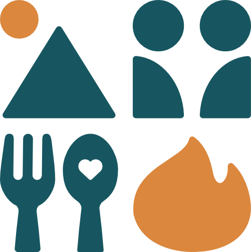 Gemeinsam über offenem Feuer kochen, essen und lachen.
